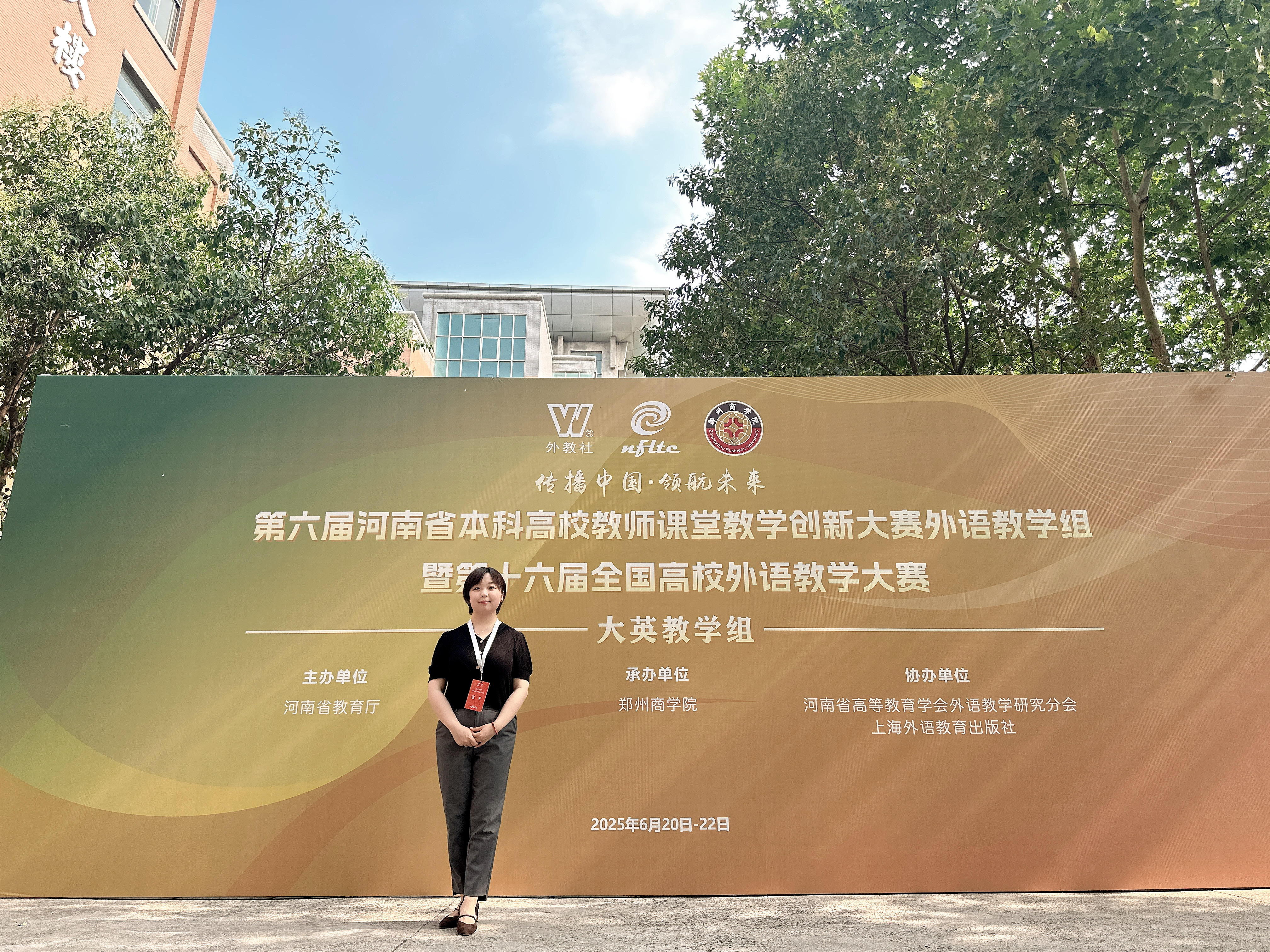 在第六届河南省本科高校教师课堂教学创新大赛外语教学组暨第十六届全国高校外语教学大赛中,外国语学院教师马霞蔚凭借出色表现,在“大英教学组”激烈竞争中脱颖而出,斩获一等奖,为学校争得荣誉。本次大赛由河南省教育厅主办,以“传播中国 领航未来”为主题,对教师的教学创新与课堂实践能力进行严格评审。