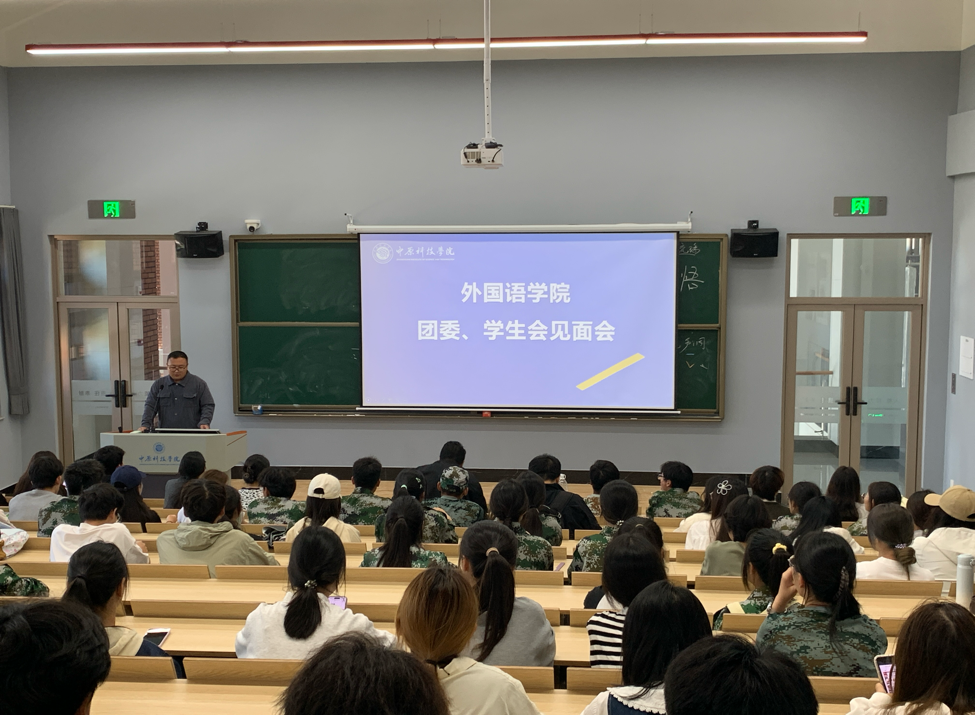 外国语学院团委、学生会新老成员见面会于2025年9月24日在中兴楼M211召开。学院团委书记何明哲与全体团委、学生会成员齐聚一堂,共同开启新征程。