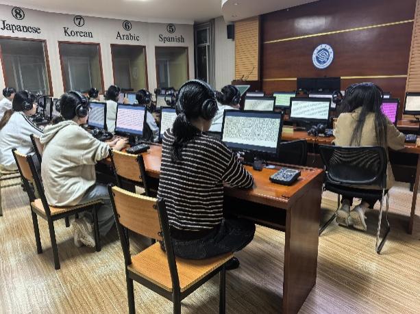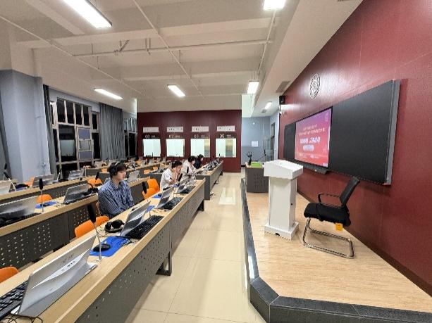 本次校赛选拔形式为视译。外国语学院利用翻译实验室的专业设备和软件,采用与国赛口译赛项一致的考核形式和流程,将参赛选手的视译内容录音,再由专业的口译老师评审。此外,校赛分两个考场,由外国语学院口译课程组教师组织比赛并亲自监考,确保比赛公平公正,顺利进行。