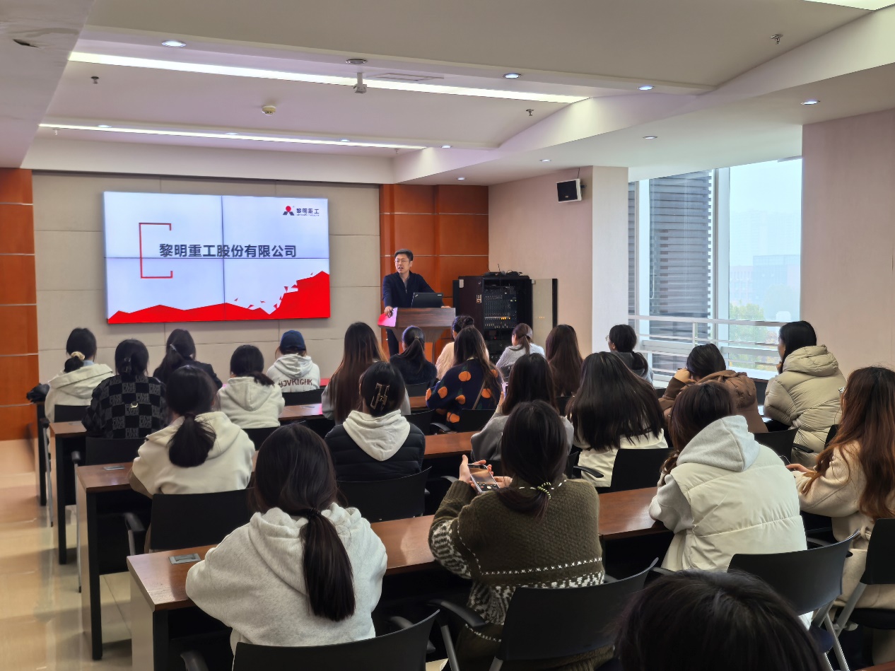 黎明重工人事经理董铭对师生一行表示热烈欢迎,随后从公司简介、行业地位、人才战略及员工发展通道等方面展开介绍,重点解读外贸与跨境电商领域对英、西语专业人才的能力需求,为同学们明晰职业发展方向。