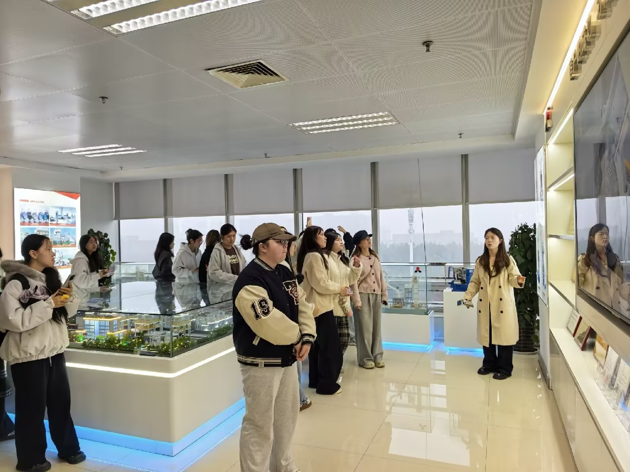 在公司人员引导下,师生先后参观生产车间、研究中心、企划部、外贸部及市场部等关键部门,近距离观察企业运营流程,直观感受专业语言在实际商务场景中的应用场景,深化对行业的认知。