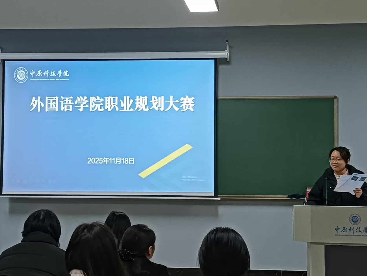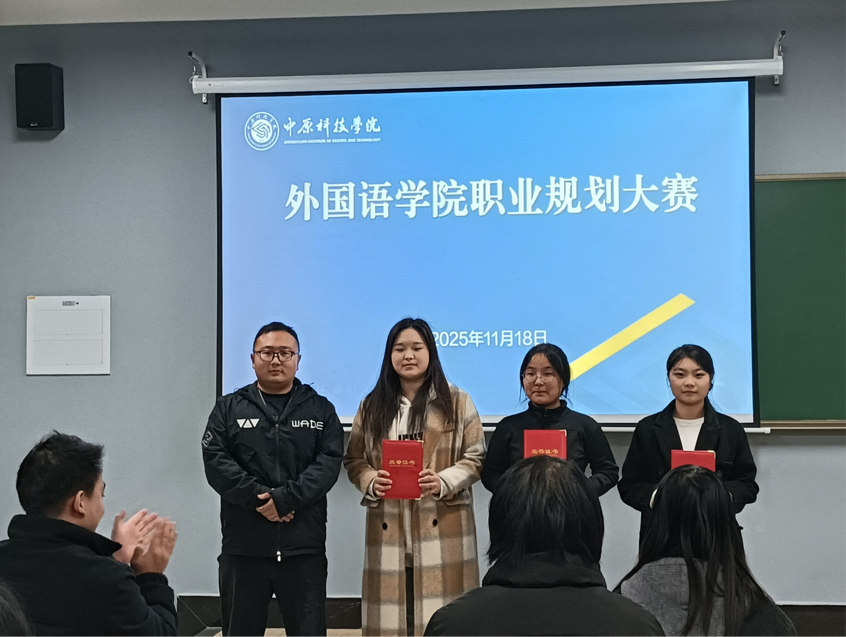 为引导学子树立正确职业观念、提升职业规划能力,为未来职业生涯筑牢根基,2025 年 11 月 18 日,外国语学院大学生职业规划大赛在中兴楼 S216 圆满举行。外国语学院团委书记何明哲及辅导员张丽阳、周远航、蔡继鸣老师担任评委,共同呈现了一场锚定梦想、赋能职业未来的精彩角逐。