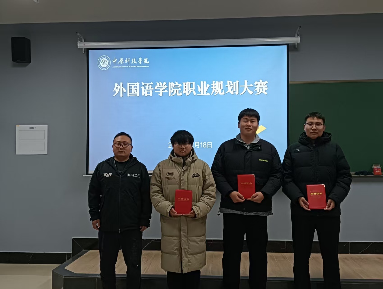 多轮激烈角逐后,本次职业规划大赛获奖名单正式敲定。何明哲老师为脱颖而出的学子颁发荣誉证书,既是对其职业规划素养与现场展示风采的充分认可,也为本次赛事的精彩历程落下圆满帷幕。