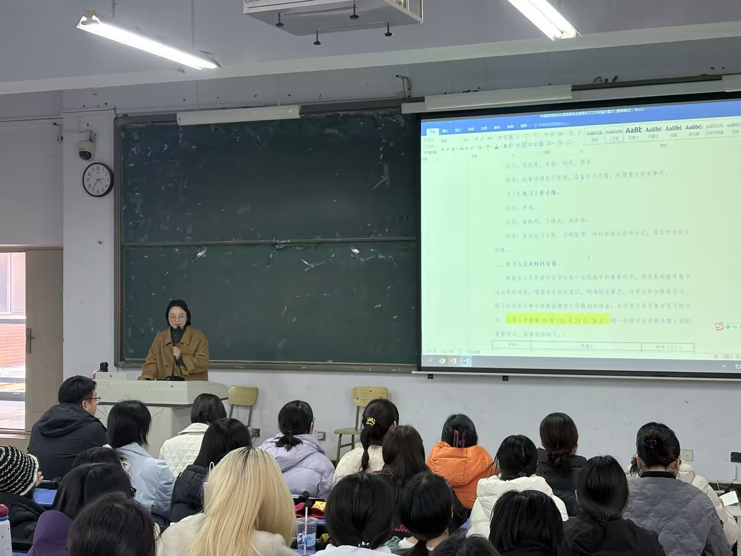其次,王晓庆老师详细解读了本次见习的具体方案。从见习学校分配、岗位职责要求到安全注意事项、考核评价标准,逐一进行细致说明,要求同学们严格遵守见习学校的各项规章制度,以严谨认真的态度完成听课记录、课堂辅助等各项任务,展现我校英语专业学子的良好风貌。