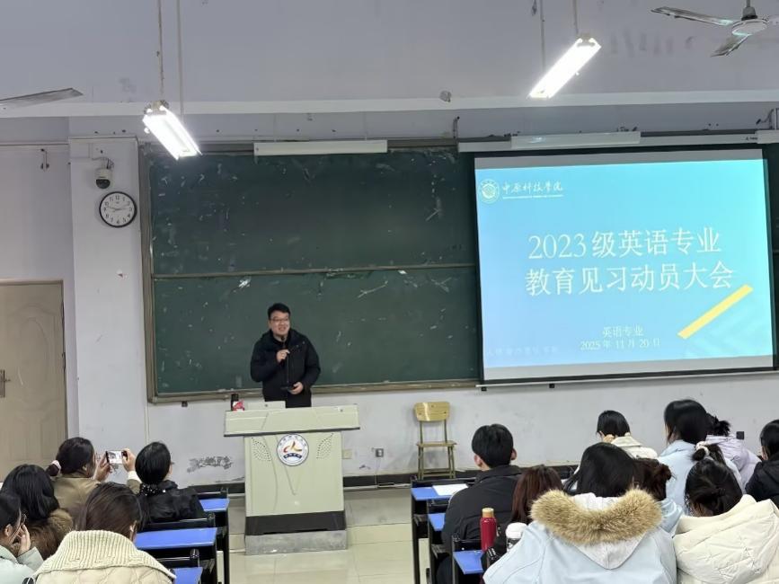 为夯实英语专业学生的教育教学实践基础,搭建理论与实践深度融合的桥梁,11月20日,英语专业教育见习动员大会在文质楼213隆重举行。外国语学院副院长李莉、党总支副书记孙浩、英语教研室主任崔晓珂、英语教研室副主任王晓庆、学科教学教研室副主任孙胜男、2023级英语专业见习指导教师、辅导员及全体2023级英语专业学生参加了此次大会,共同拉开了教育见习的序幕。