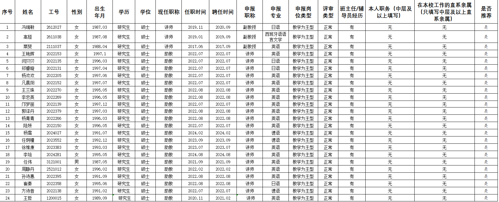 外国语学院2025年度高校教师职称评审(内聘)推荐结果
