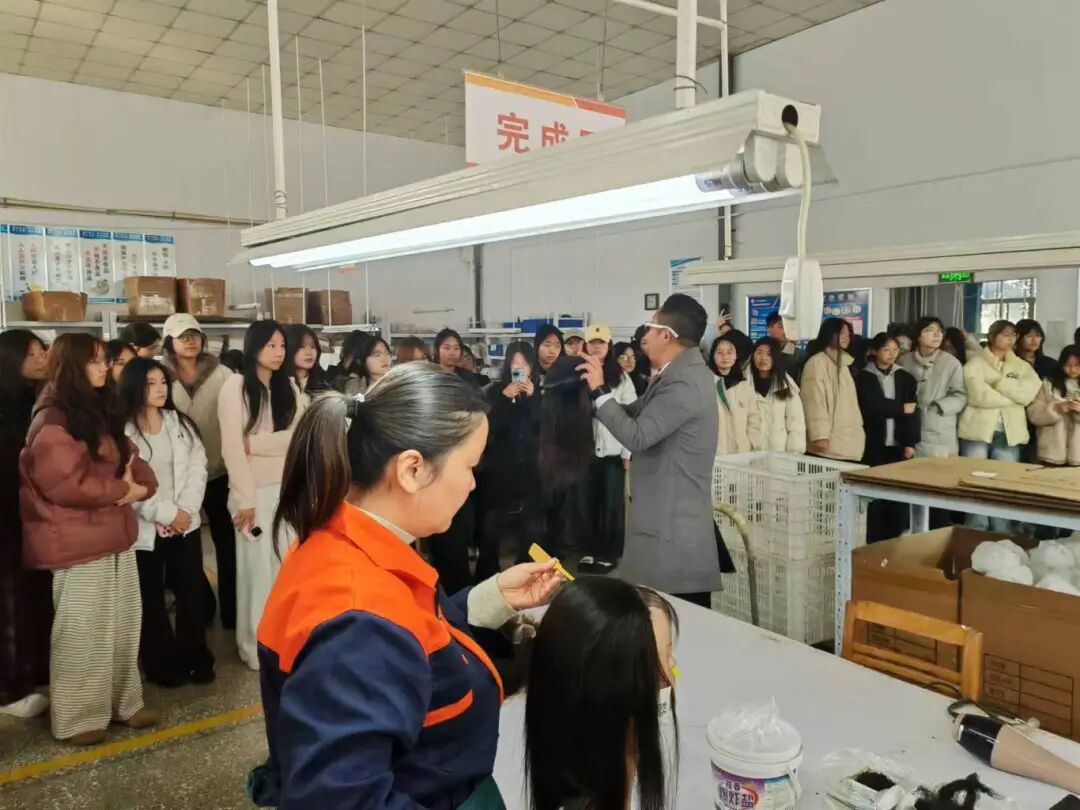 活动当天,100余名商务英语和西班牙语专业学子在企业代表的引导下,深入假发生产一线,全方位观摩了原料筛选、染色、钩织到成品定型的完整流程。每一个精细环节都让同学们对许昌假发产业的工艺积淀与工匠精神有了直观且深刻的认识。随后,企业外贸负责人详细讲解了假发产品通过亚马逊、速卖通等平台走向全球市场的跨境电商链路,为同学们搭建起理论与实战的桥梁。